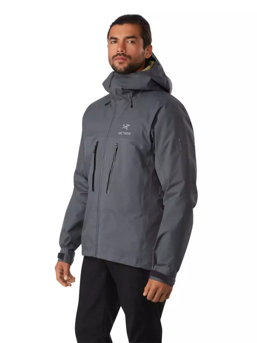 Alpha AR er en jakke for klatrere, og funksjonene er valgt med tanke på høyfjellsforhold. Lett tilgjengelige, tverrgående lommer er plassert høyt oppe, og kan brukes både med klatresele og sekk. Den heldekkende, hjelmkompatible hetten StormHood™ kan strammes tett, beveger seg med hodet og gir særdeles god sidesikt. Kantreguleringene Cohaesive™ fungerer som Hemlock™ for å hindre at jakken sklir opp under klatreselen. Armhuleglidelåser gir ventilasjon, og laminerte WaterTight™-glidelåser bidrar til å holde været ute.