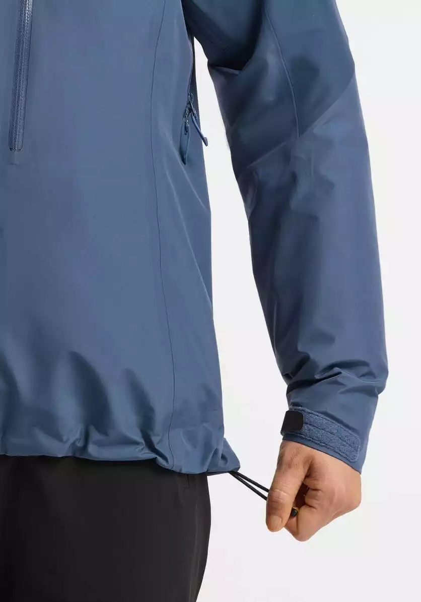 Alpha AR er en jakke for klatrere, og funksjonene er valgt med tanke på høyfjellsforhold. Lett tilgjengelige, tverrgående lommer er plassert høyt oppe, og kan brukes både med klatresele og sekk. Den heldekkende, hjelmkompatible hetten StormHood™ kan strammes tett, beveger seg med hodet og gir særdeles god sidesikt. Kantreguleringene Cohaesive™ fungerer som Hemlock™ for å hindre at jakken sklir opp under klatreselen. Armhuleglidelåser gir ventilasjon, og laminerte WaterTight™-glidelåser bidrar til å holde været ute.