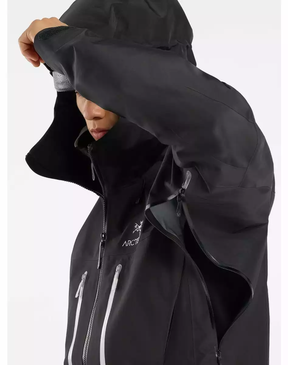 Funksjonsnivået til Alpha SV er beregnet på å gi topp trygghet i ekstreme forhold, med innebygget RECCO®-refleks som letter jobben for søkemannskap i nødssituasjoner, den hjelmkompatible StormHood™-hetten, glidelåser i armhulene og formsydde ledd som gir deg full bevegelsesfrihet i fjellterrenget. Alle glidlåsene er WaterTight™-glidelåser. Disse er svært vannavstøtende, men ikke vanntette. Det anbefales ikke å oppbevare gjenstander som ikke tåler fuktighet i lommene dine