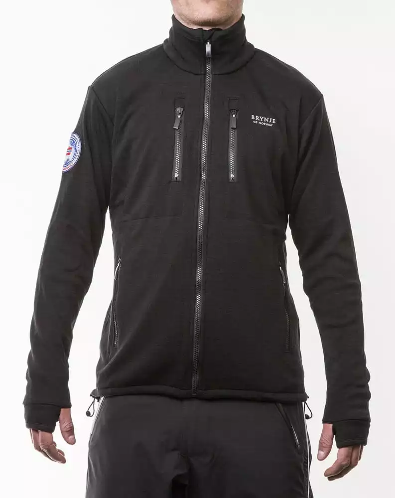 Antarctic-jakken fra Brynje har vindstopper i front, to brystlommer og to håndlommer med glidelås. Med hel glidelås foran, stramming i nederkanten og tommelhull er denne jakken perfekt som ytterjakke eller mellombekledning.