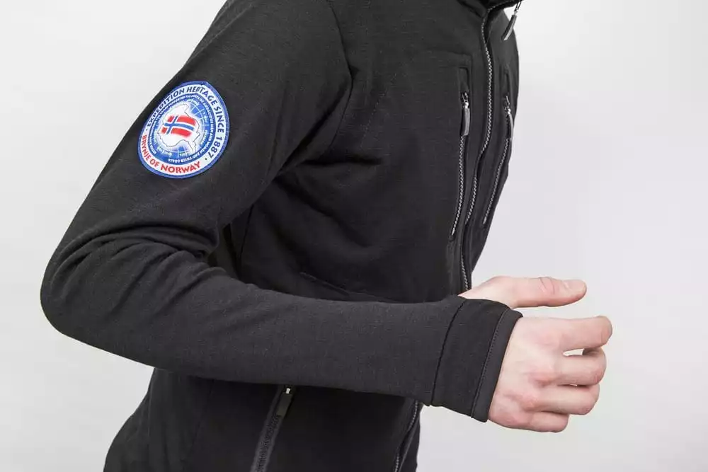 Antarctic er Brynjes spesialprodukter for tur og friluftsliv. Med denne Antartic-jakken får du en varm og fukttransporterende mellomlagsbekledning som er svært behagelig å bruke og gjør det mulig for deg å gå lengre og oftere uten vindjakke. I hele jakken er det Super Thermo-netting som fór og tettstrikket Merinoull på utsiden. Nettingen er isolerende ved hvile og ventilerende ved aktivitet, mens ullen absorberer varmedamp fra kroppen og luner, slik at du holder deg maksimalt tørr. Jakkens vindtette front beskytter de varmeproduserende organene, som er viktig for å ikke sløse med energien kroppen oppbevarer. Jakken kan like mye som å brukes på langturer, brukes som et koseplagg og til allround hverdagsbruk.
