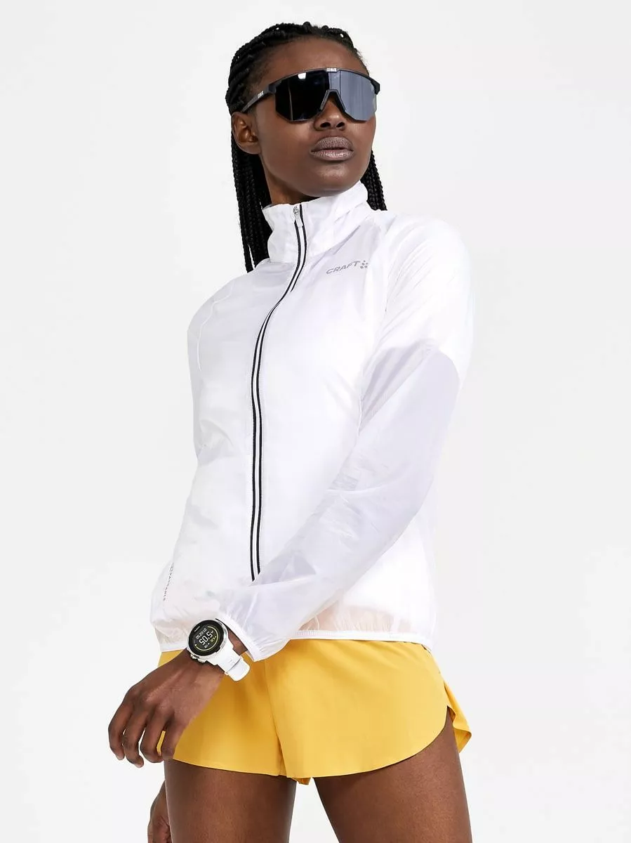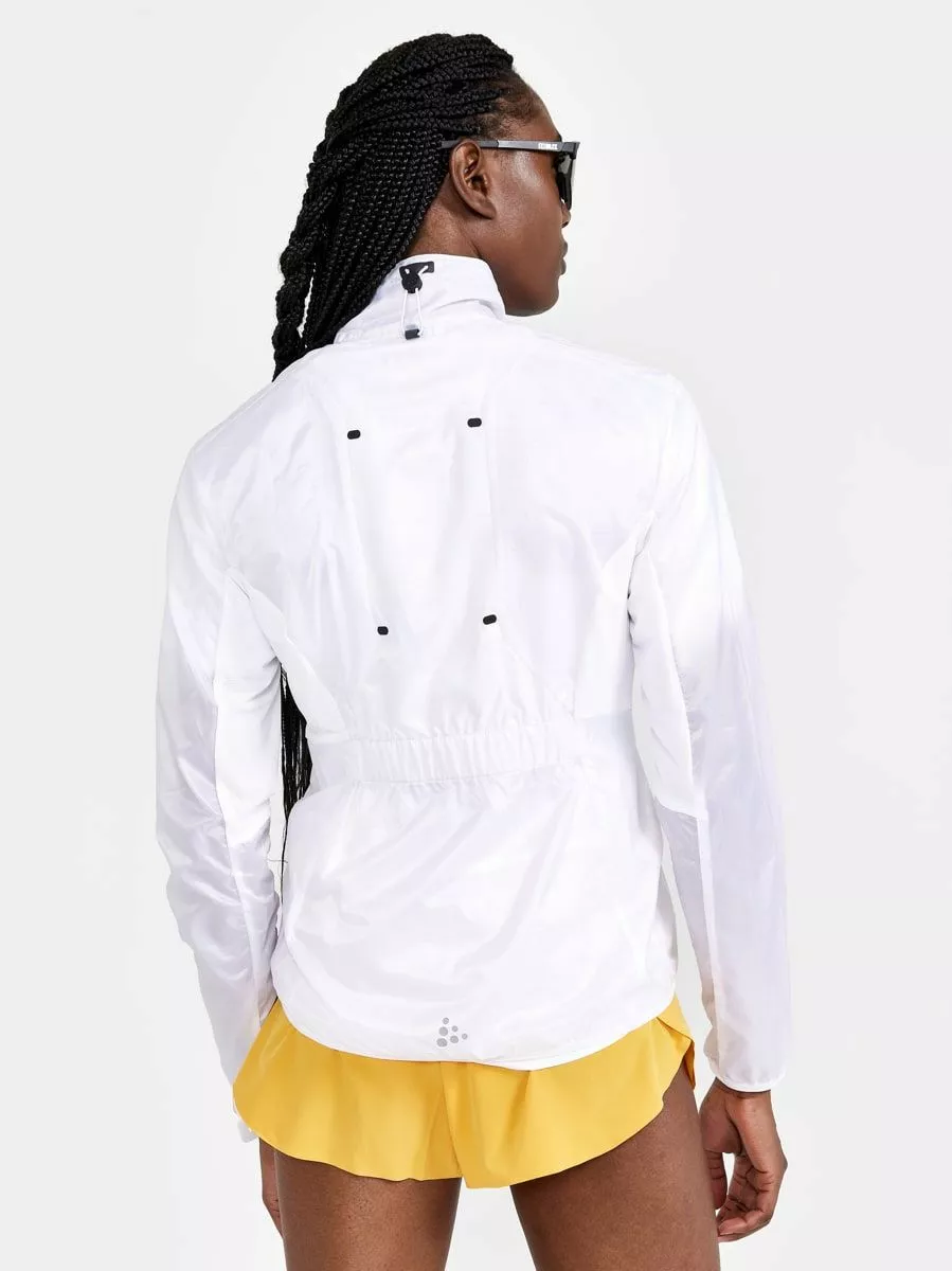 Craft Pro Hypervent Jacket er en svært ventilerende løpejakke til dame utviklet for løping på høyeste nivå. Jakken er laget av et mykt og lett ripstop-materiale som gir effektiv regulering av kroppstemperaturen under høyintensiv trening. Jakken har ventilerende mesh på sidene, ventilasjonsåpning i ryggen, samt glidelåser på siden av brystet som kan åpnes for enda bedre ventilasjon. Jakken er også lett å ta med seg da den kan pakkes ned i sin egen lomme og tar svært liten plass.