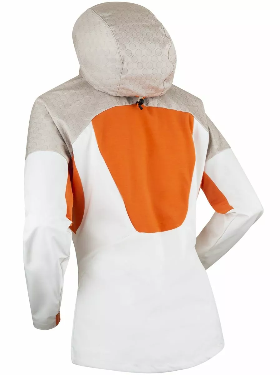 Jakken kommer i et 3-lags softshell materiale med vind- og vannavvisende membran med utmerket pusteevne, som sørger for en optimal temperaturregulering. Hurtigtørkende polyester på innsiden av jakken. Den justerbare hetten er festet med glidelås og kan enkelt tas av og på.