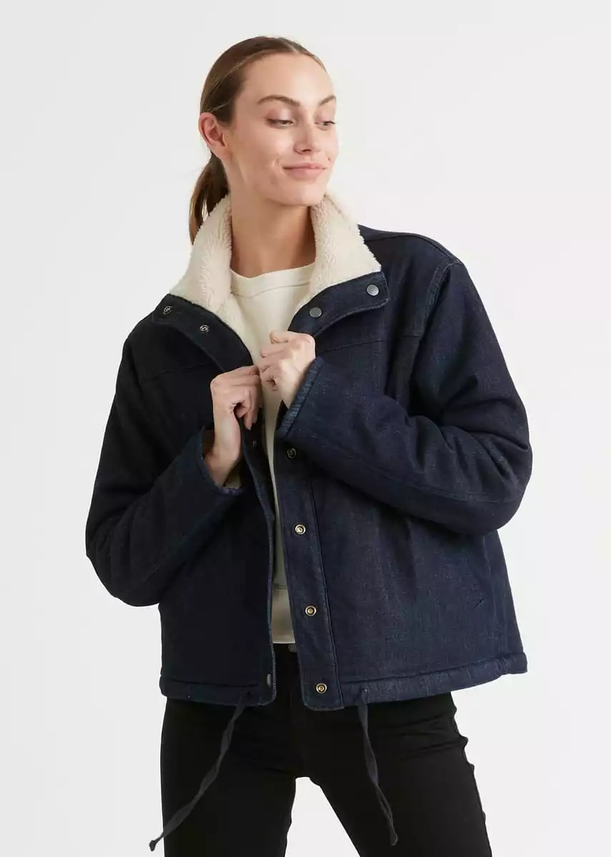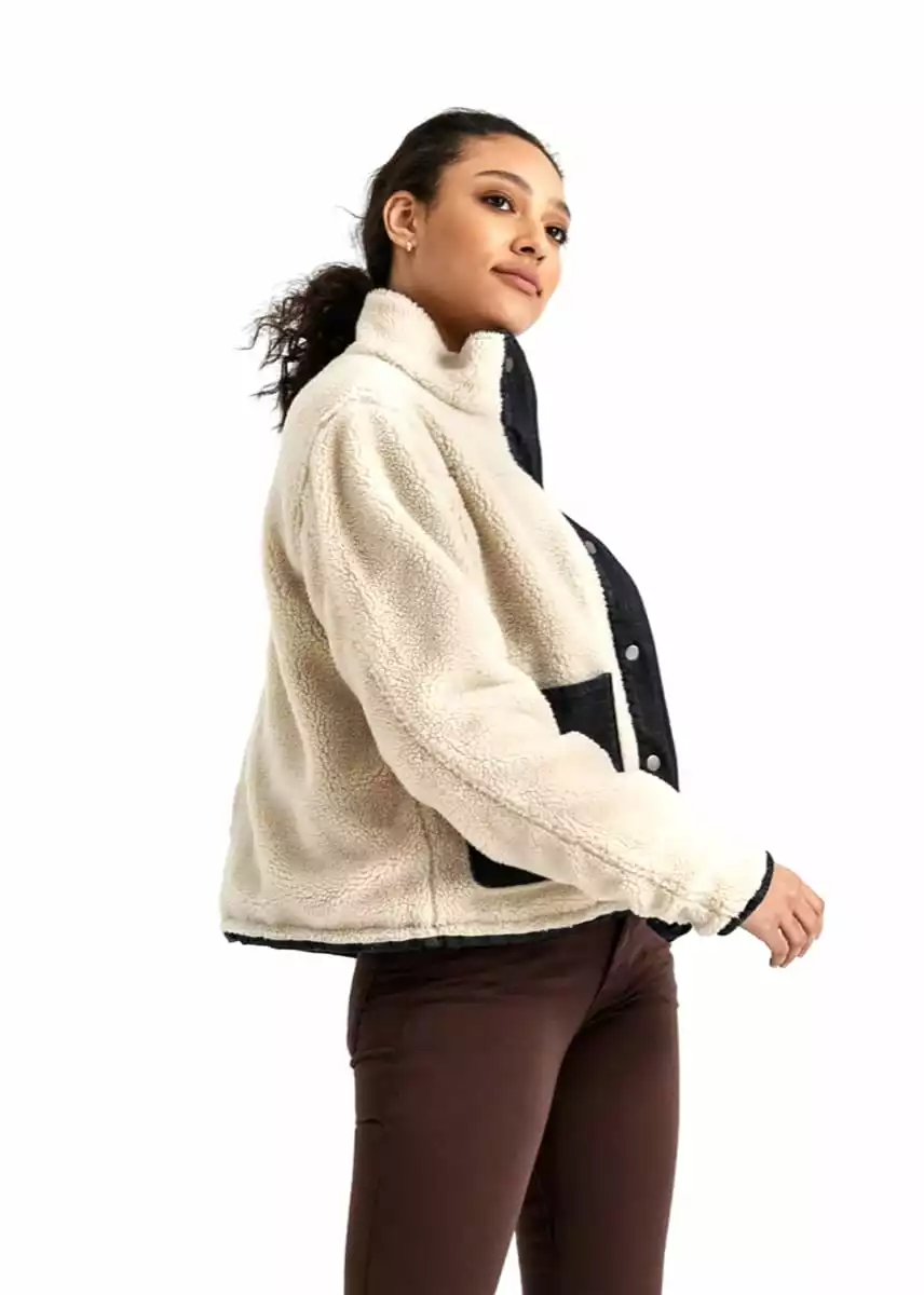 Denim Sherpa Jacket fra Duer er en utrolig allsidig, kul og vendbar jakke til dame. På den ene siden får du en stilig Denim jakke med mykt sherpa på innsiden, vener du jakken får du en super fleece. Denne jakka passer de fleste anledninger og sørger for ekstra varme uansett anledning.