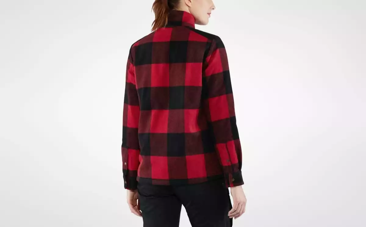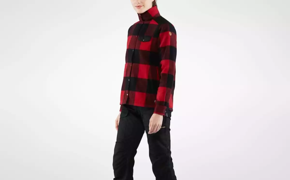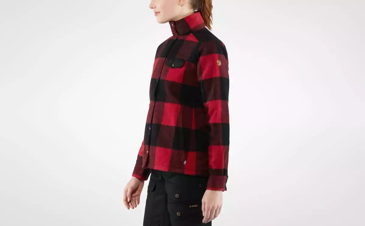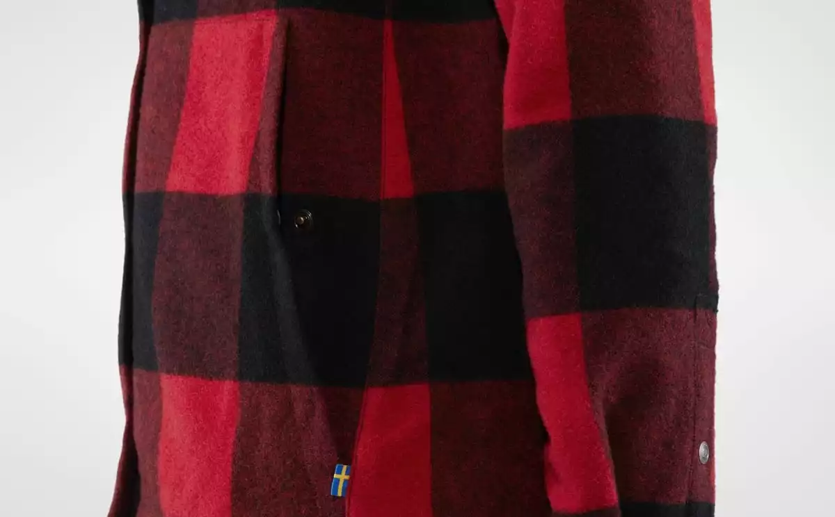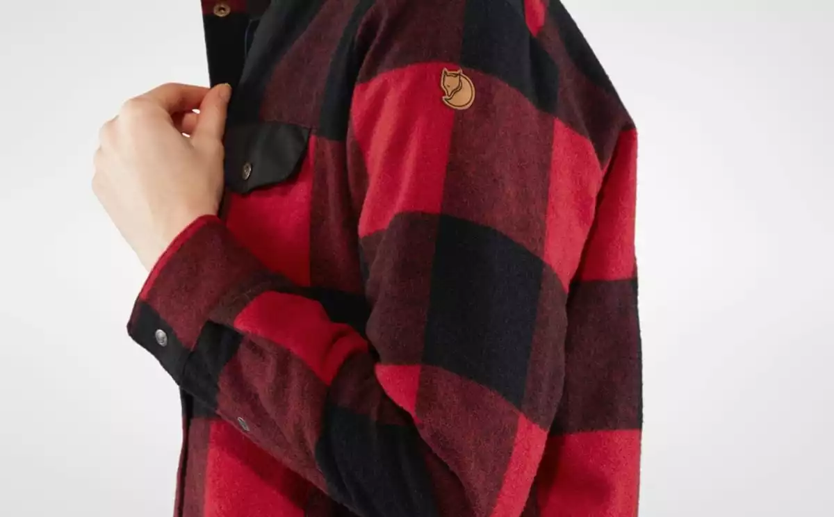 Nyt tiden rundt bålet litt lenger i denne behagelige mellomlagsjakken i tømmerhoggerstil. Den er en varmere versjon av Fjällrävens populære Canada Shirt, og er laget av myk flanell i resirkulert ull og vattert med Lavalan; en bærekraftig vattering laget av utvalgte svensk ull og PLA-fibre fra maisstivelse. Skuldre, albuer og lommeklaff er forsterket med G-1000 Eco for ekstra slitestyrke. Perfekt under en skalljakke på kalde høst- og vinterdager, og fungerer også bra alene i milde temperaturer.