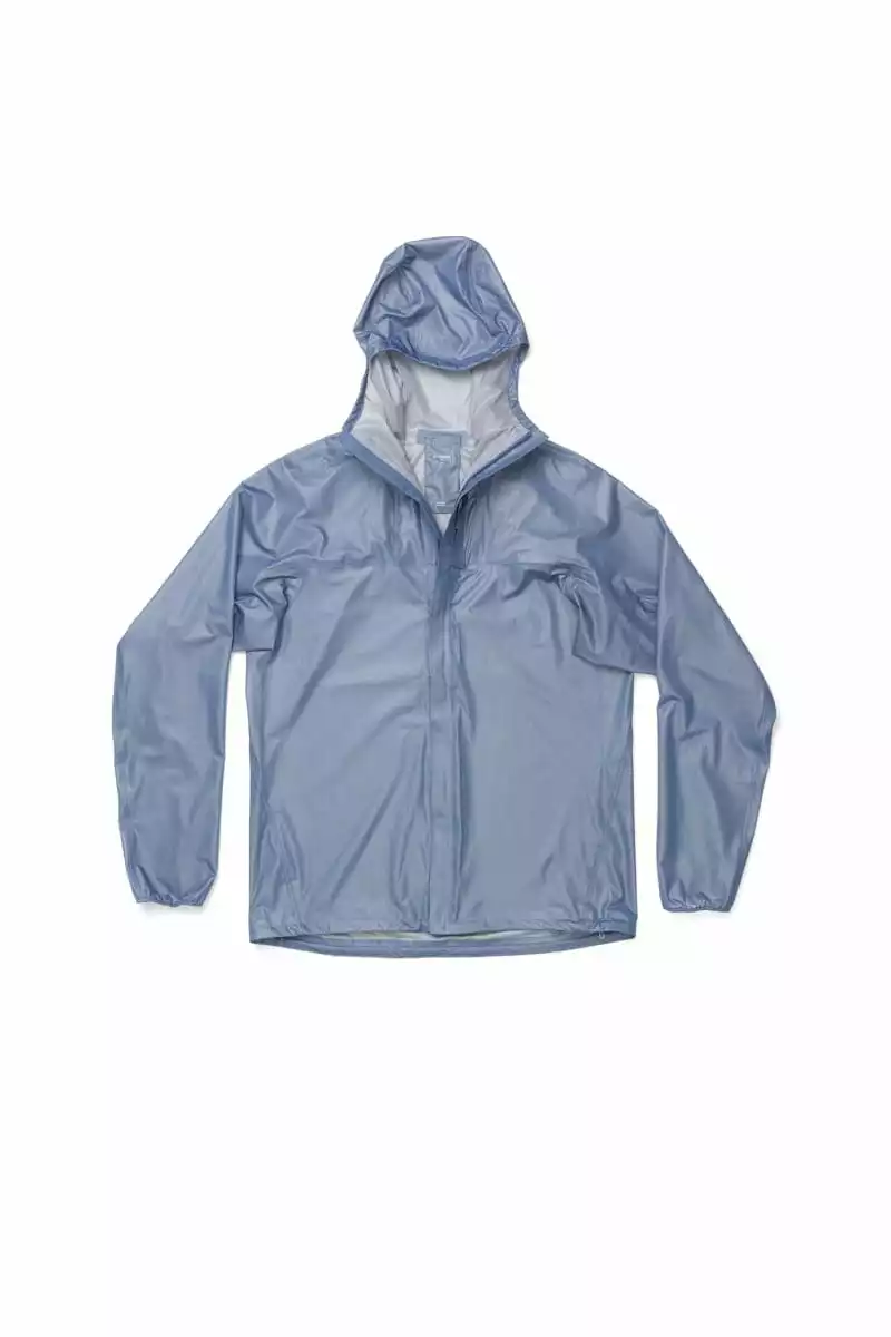 The Orange Jacket er en minimalistisk jakke, og for å spare vekt og bulk er det ikke lagt til noen ekstra funksjoner bortsett fra det viktigste. En brystlomme og hette som kan rulles ned. Hovedtrekket til plagget er konseptet og hvordan det føles å bruke det. Dette er ingen vanlig skalljakke, men en helt ny type ultralett glatthet som du knapt vil føle at du bruker, men som fortsatt holder deg tørr i enhver storm.