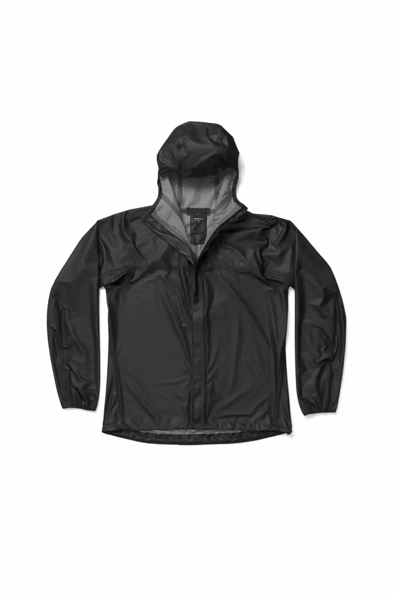 The Orange Jacket er en minimalistisk jakke, og for å spare vekt og bulk er det ikke lagt til noen ekstra funksjoner bortsett fra det viktigste. En brystlomme og hette som kan rulles ned. Hovedtrekket til plagget er konseptet og hvordan det føles å bruke det. Dette er ingen vanlig skalljakke, men en helt ny type ultralett glatthet som du knapt vil føle at du bruker, men som fortsatt holder deg tørr i enhver storm.