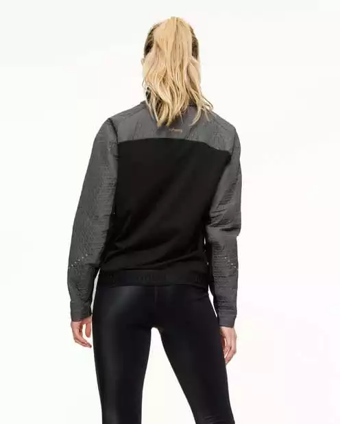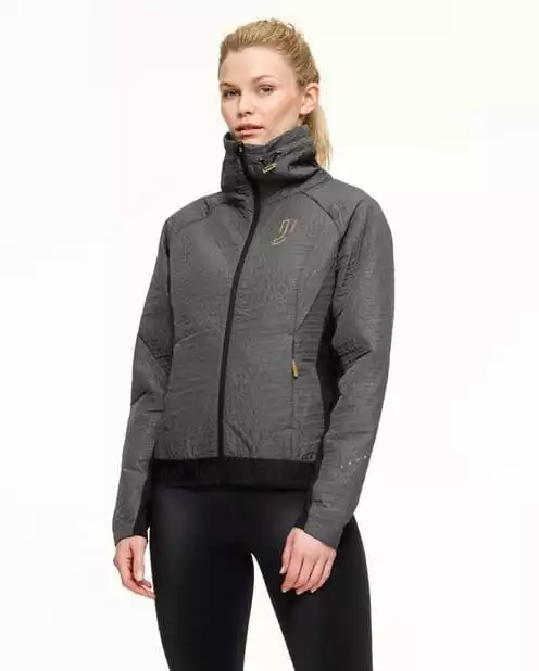 Sporty og feminin jakke med et lett og teknisk paddet material til løping eller annen utendørsaktiviteter. Jakken har en høy og justerbar krage, og strechpaneler som gir optimal pusteevne og bevegelse. Feminin og flott passform.