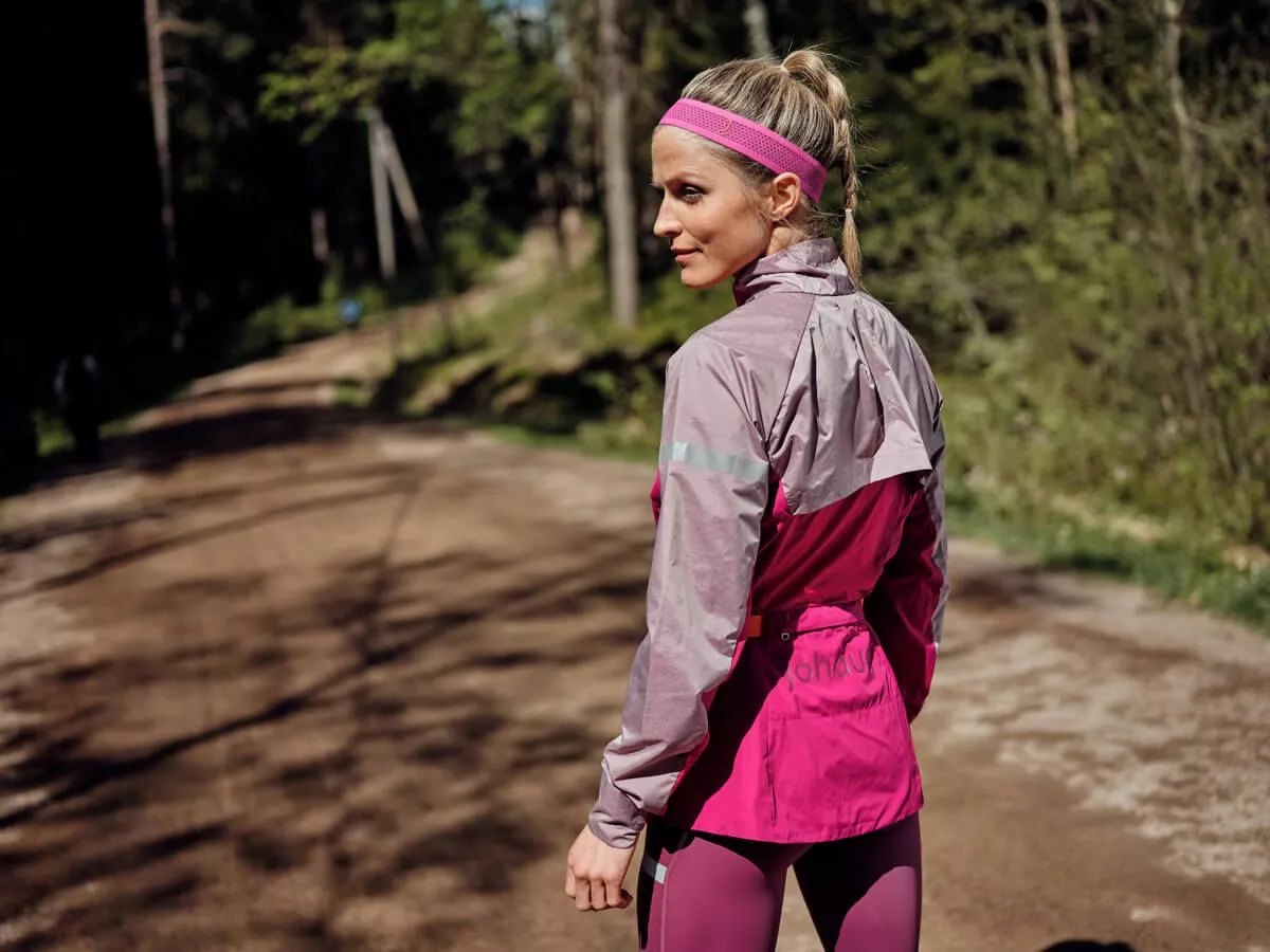 Feminin, teknisk og funksjonell løpejakke fra Johaug. Perfekt til aktive dager.