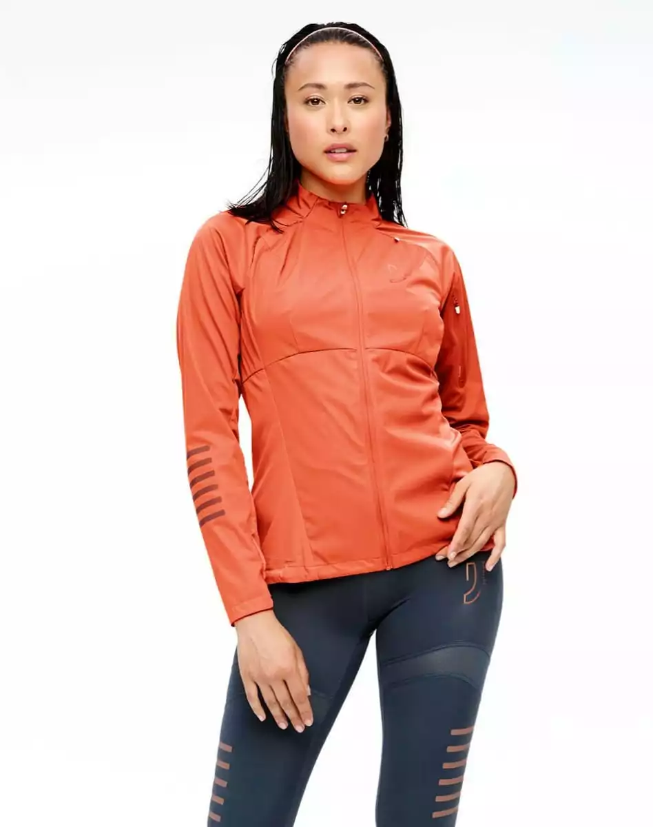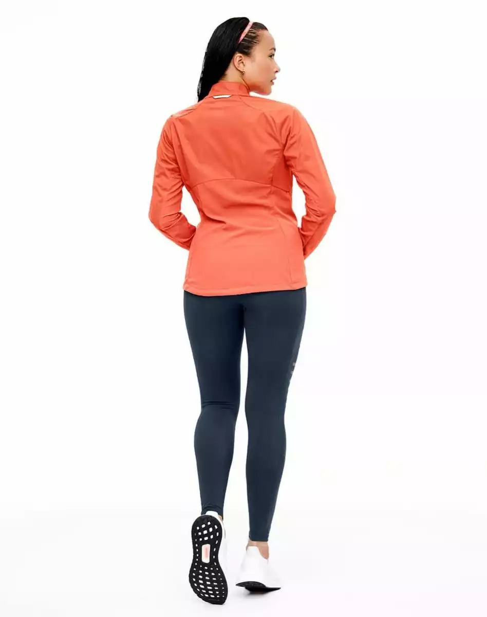 Superlett løpejakke med feminine detaljer. Jakken er laget i vind- og vannavstøtende softshellmateriale og er perfekt for løpeturer på litt kjøligere vår- og sommerdager. Strategisk plassert mesh gir utmerket ventilasjon og raglanermer sørger for optimal bevegelse. Jakken har en praktisk lomme til telefon med ledningsutgang på overarmen som gjør det enkelt å lytte til favorittmusikken din mens du løper.