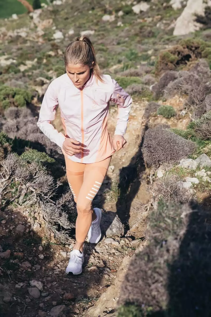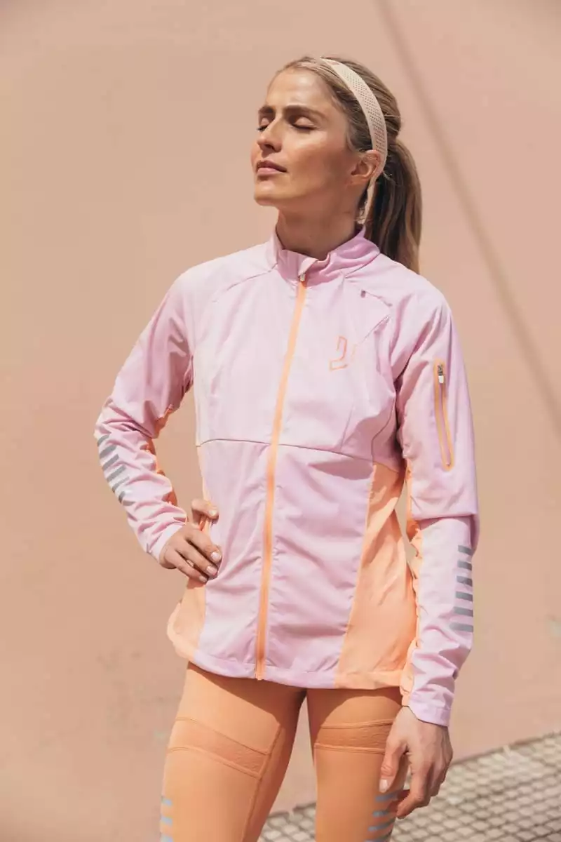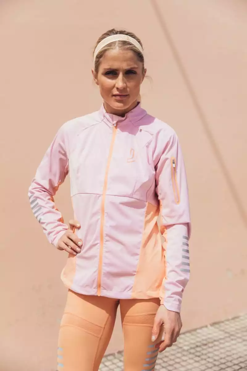 Superlett løpejakke med feminine detaljer. Jakken er laget i vind- og vannavstøtende softshellmateriale og er perfekt for løpeturer på litt kjøligere vår- og sommerdager. Strategisk plassert mesh gir utmerket ventilasjon og raglanermer sørger for optimal bevegelse. Jakken har en praktisk lomme til telefon med ledningsutgang på overarmen som gjør det enkelt å lytte til favorittmusikken din mens du løper.