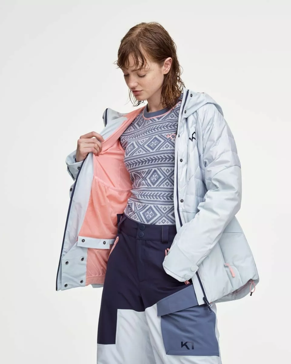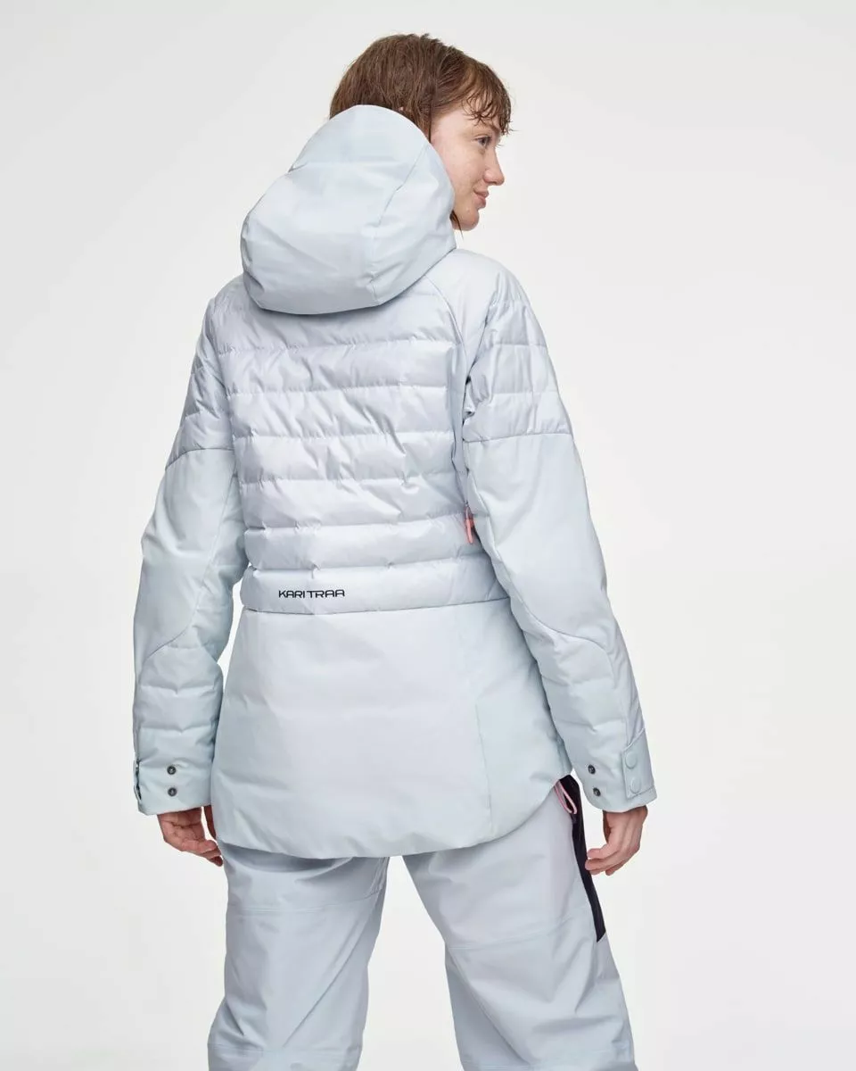 Kari Traa Ragnhild Down Jacket er en pustende og vannavisende dunjakke til dame. Jakken har polstret hette som holder kulden ute, og håndvarmende lommer for kjølige fingre. Jakken har også avtagbart snøskjørt og god bevegelsesfrihet.
