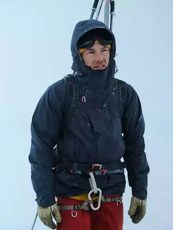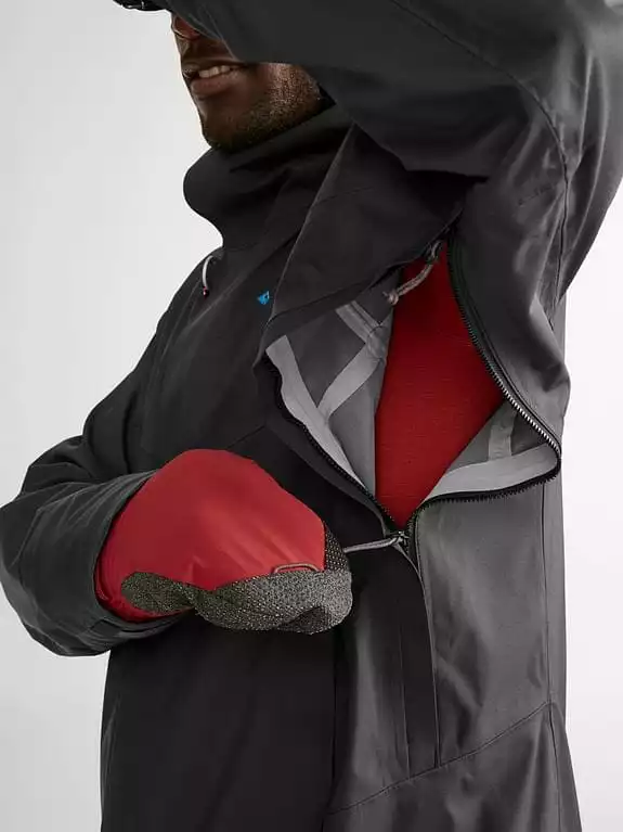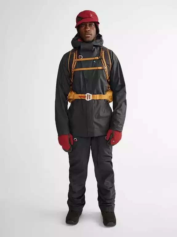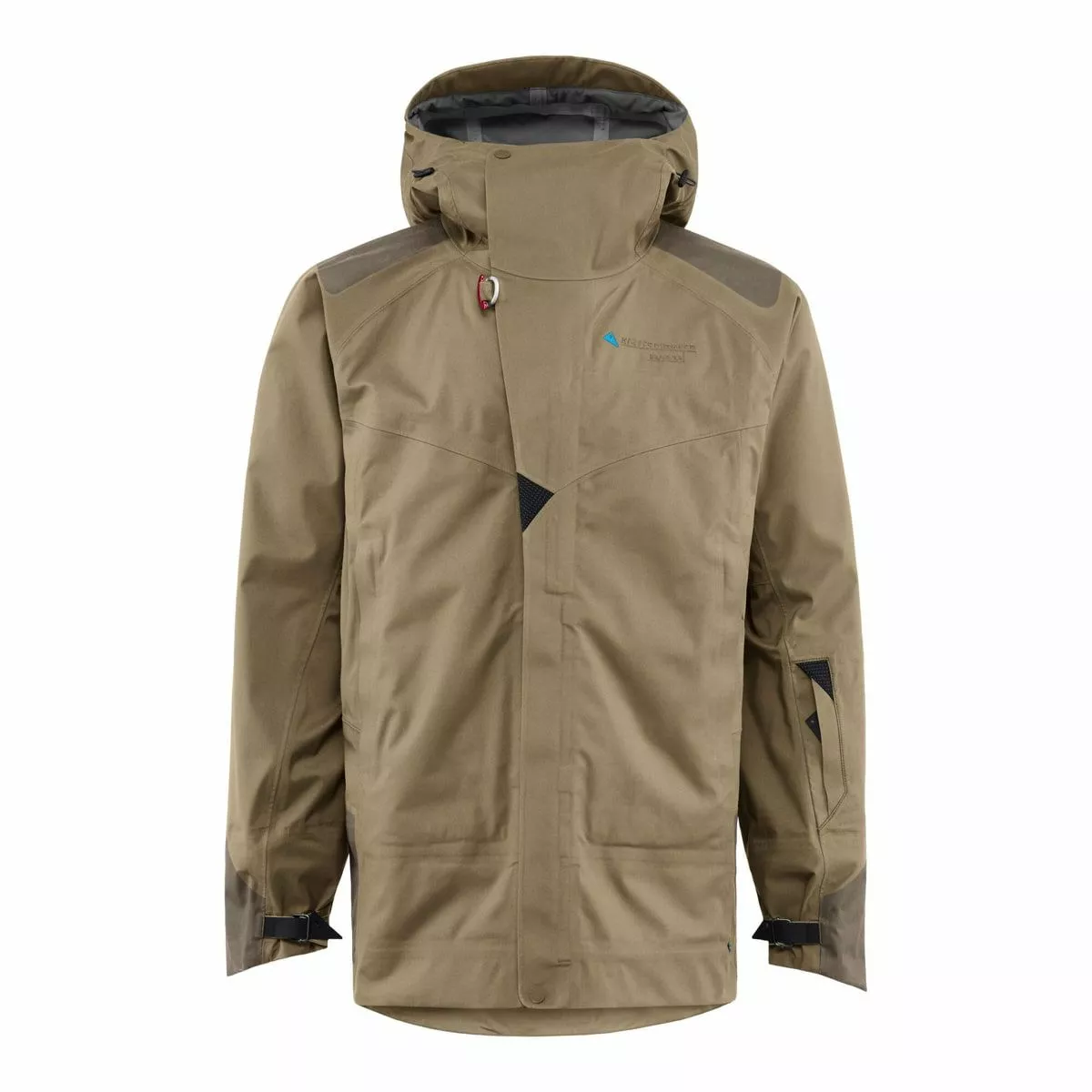 Brage Jacket fra Klättermusen er en slitesterk og allsidig 3-lags jakke for bruk på fjellet i tøffe værforhold. Jakken er helt fri fra fluorkarbon og laget i 100% stretchy, resirkulert polyamid. Den er forsterket med Duracoat™ for ekstra slitestyrke og er justerbar rundt midje, hette og mansjetter. Jakken er utstyrt med et avtagbart og justerbart snøskjørt og en forsterket brem på hetten som beskytter mot vind. Klättermusen har også inkludert en D-ring med veksler for å lukke jakken om glidelåsen skulle slutte å fungere.