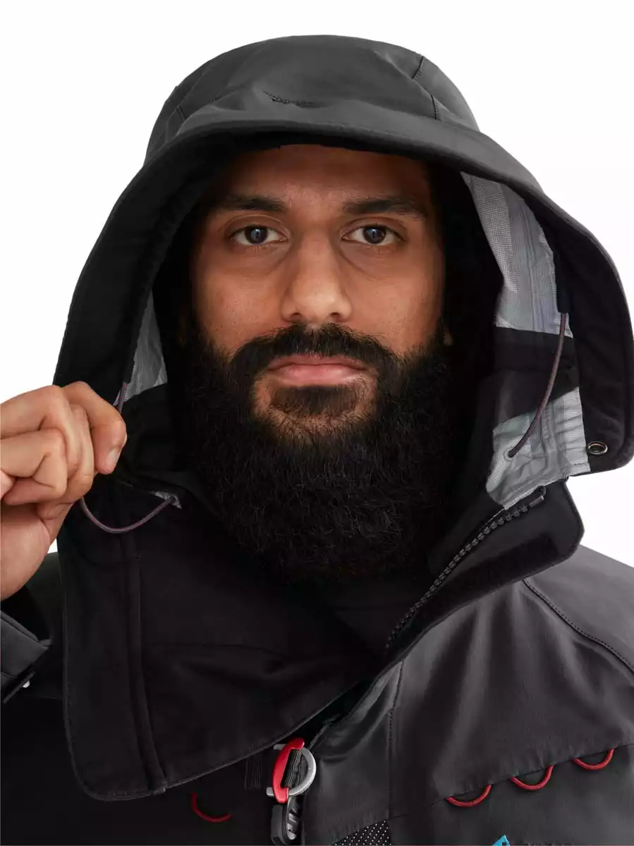Klättermusen Draupner Jacket er en 3-lags skalljakke med funksjonelle detaljer for alpint friluftsliv og er laget for å tåle slitasje og tøft bruk samtidig som den er lett nok for aktiviteter i bratt terreng. Jakken har detaljer som tre-veis justerbar hette to-veis glidelås og ventilasjon under armene. Den har også festepunkt for utstyr på brystet, to brystlommer og sikkerhetshempe med D-ring feste om glidelåsen skulle gå istykker, samt et lite nødkompass og refleksdetaljer.