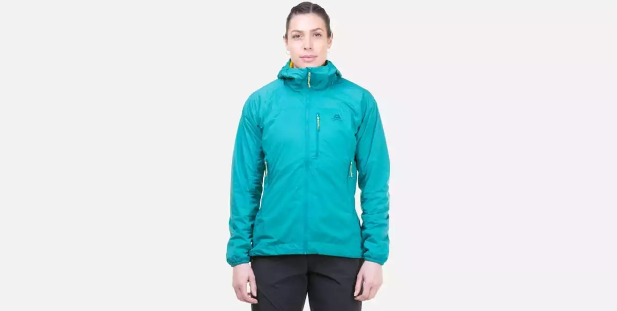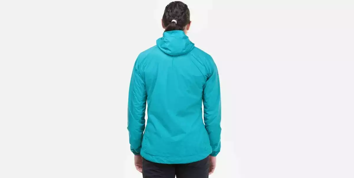Aerotherm Wmns Jacket fra Mountain Equipment er en vindtett og hurtigtørkende softshelljakke til dame, passer perfekt til fotturer eller løping i fjellet. Den har et dobbeltvevet softshellmateriale og et fukttransporterende innermateriale som bidrar til litt varme slik at jakken passer utmerket til skiftende forhold i fjellet. Jakken kommer med hette som enkelt kan rulles sammen og pakkes bort i kragen, itillegg har den sidelommer, brystlomme og elastiske mansjetter. Når jakken ikke er i bruk kan den enkelt pakkes ned i egen lomme som har integrert twin karabiner-løkke for enkelt oppheng og oppbevaring.