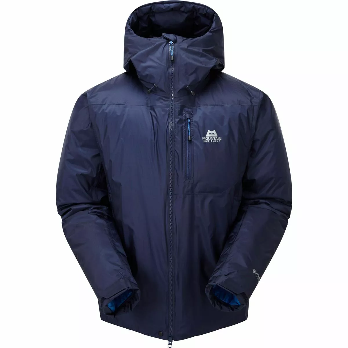 Starter på toppen, her finner vi en Super Alpine HC-hette med plass til hjelm under og har Mountain Equipment’s strålende EXL-fôr. EXL er en serie elastiske materialer som er sydd i hetten slik at den passer til hodet ditt når du bruker hjelm og isolerer godt uten. Dette stopper ikke bare hetten med å falle ned over øynene dine, men øker også varmen. Elastiske mansjetter fanger opp ytterligere varme og passer fint over hansker eller bare håndledd, mens innsnøring i bunn med doble bånd forsegler varmen rundt livet, uten at den sitter fast som ved tradisjonell loop-konstruksjon. En toveis glidelås foran betyr at du enkelt kan plassere jakken over en klatresele eller ventilere hvis du begynner å bli overopphetet. Oppbevaring håndteres av to håndlommer med glidelås, en brystlomme og to store innerlommer.