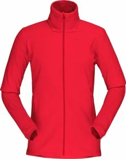 Falketind Warm1 Jacket er en allsidig mellomlagsgenser i fleece fra Norrøna, som passer til et aktivt friluftsliv hele året. Materialet er mykt og nuppefritt, laget av et slitesterkt og resirkulert Polartec®- materiale med gode varmegenskaper, med LW Polartec® Power Stretch® på enkelte områder for fleksibilitet og god passform. En høy og varm jakkekrage bidrar til komfort og god beskyttelse mot vær, og tommelhull på mansjettene sørger for at jakken ikke sklir opp. Lommene er kompatible med hoftebelte til ryggsekk.