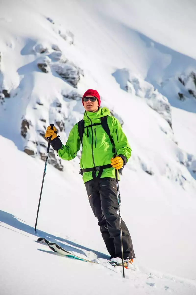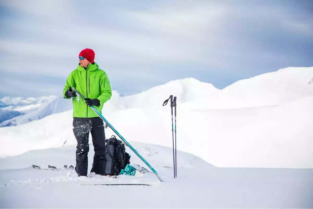 Viktige frikjøringsfuksjoner inkluderer asymmetriske mansjetter med Velcro®-justering, innvendig brystlomme, vannavstøtende YKK®-glidelåser, to-veis ventilasjon under armene og et avtakbart snøskjørt med glidelås og trykknapper.