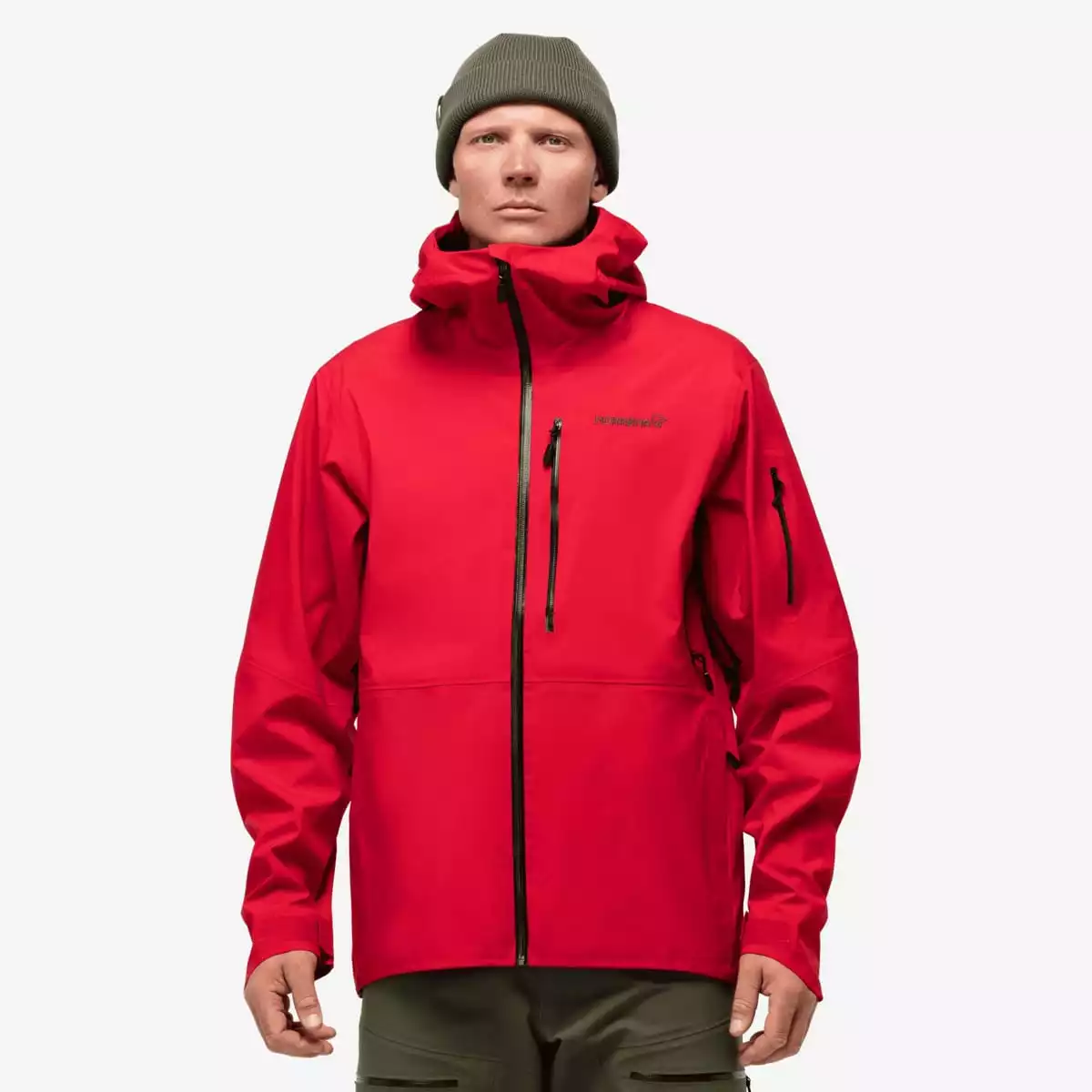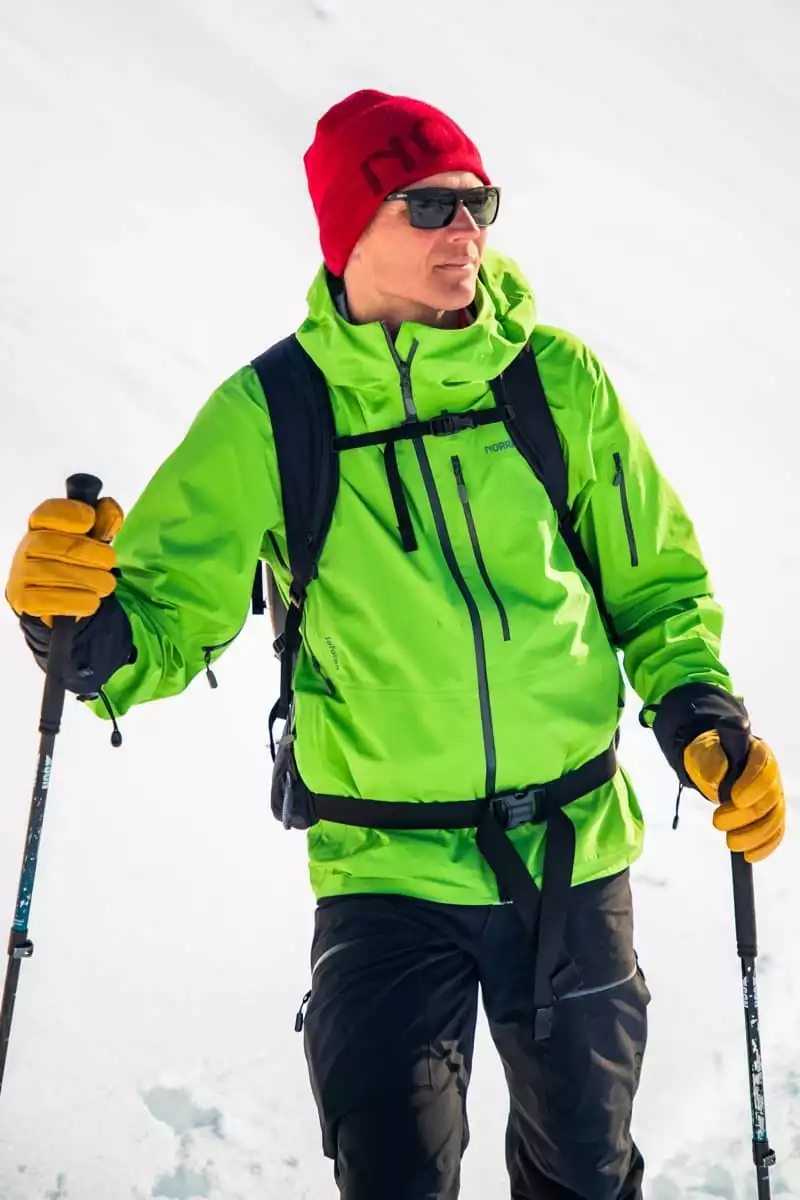 Den har det korteste snittet blant lofoten Gore-Tex-jakkene og har en vanlig noe mer “boksete” passform. De romslige napoleonslommene på brystet kommer ikke i veien for ryggsekker, og håndlommene gir ekstra oppbevaringsplass.