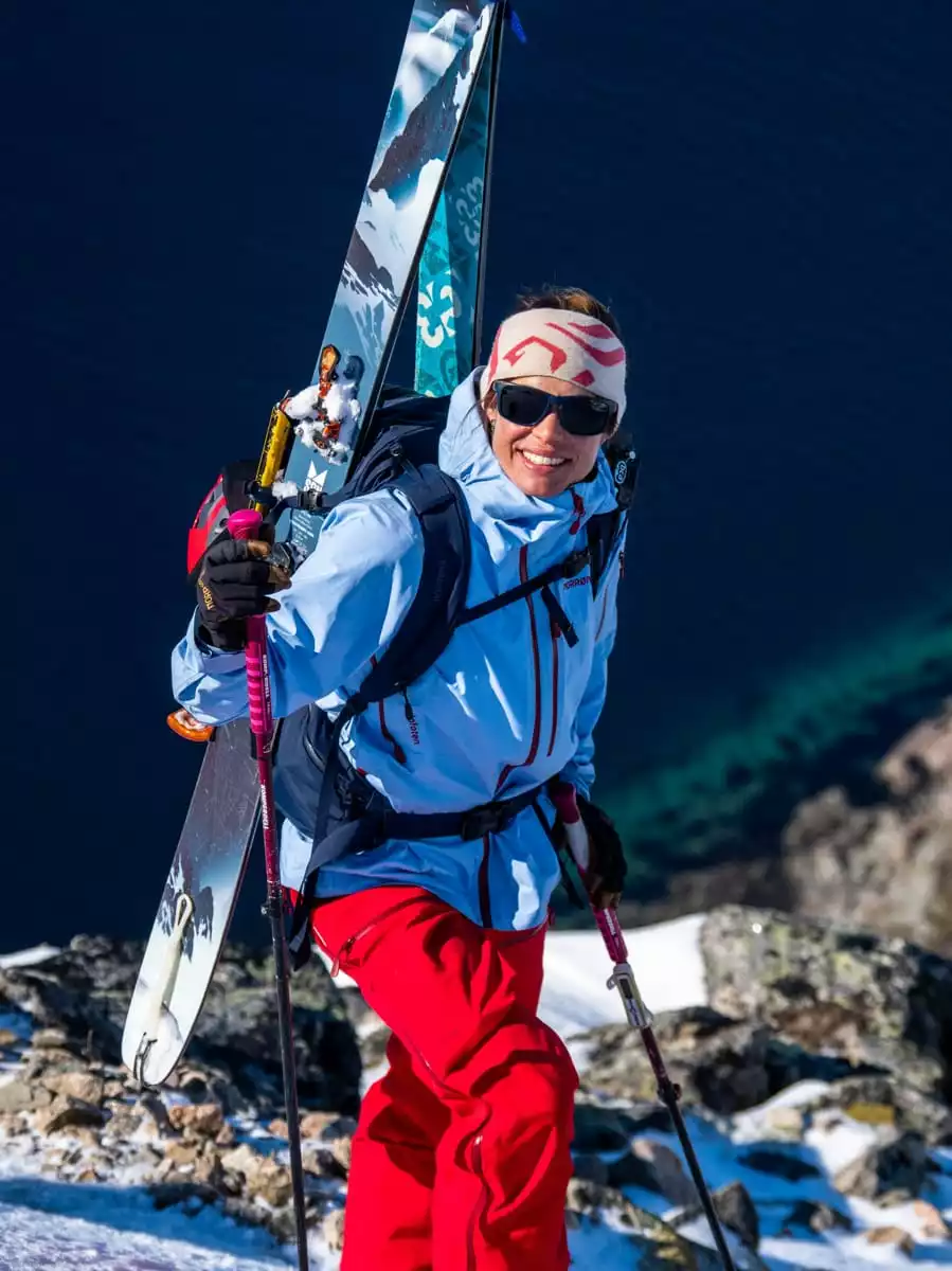 Den har det korteste snittet blant lofoten Gore-Tex-jakkene og har en vanlig noe mer “boksete” passform. De romslige napoleonslommene på brystet kommer ikke i veien for ryggsekker, og håndlommene gir ekstra oppbevaringsplass.