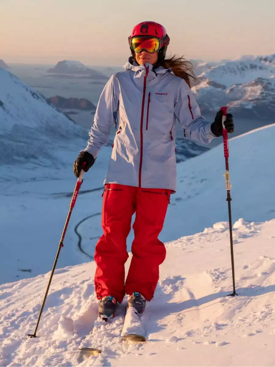 Viktige frikjøringsfuksjoner inkluderer asymmetriske mansjetter med Velcro®-justering, innvendig brystlomme, vannavstøtende YKK®-glidelåser, to-veis ventilasjon under armene og et avtakbart snøskjørt med glidelås og trykknapper.