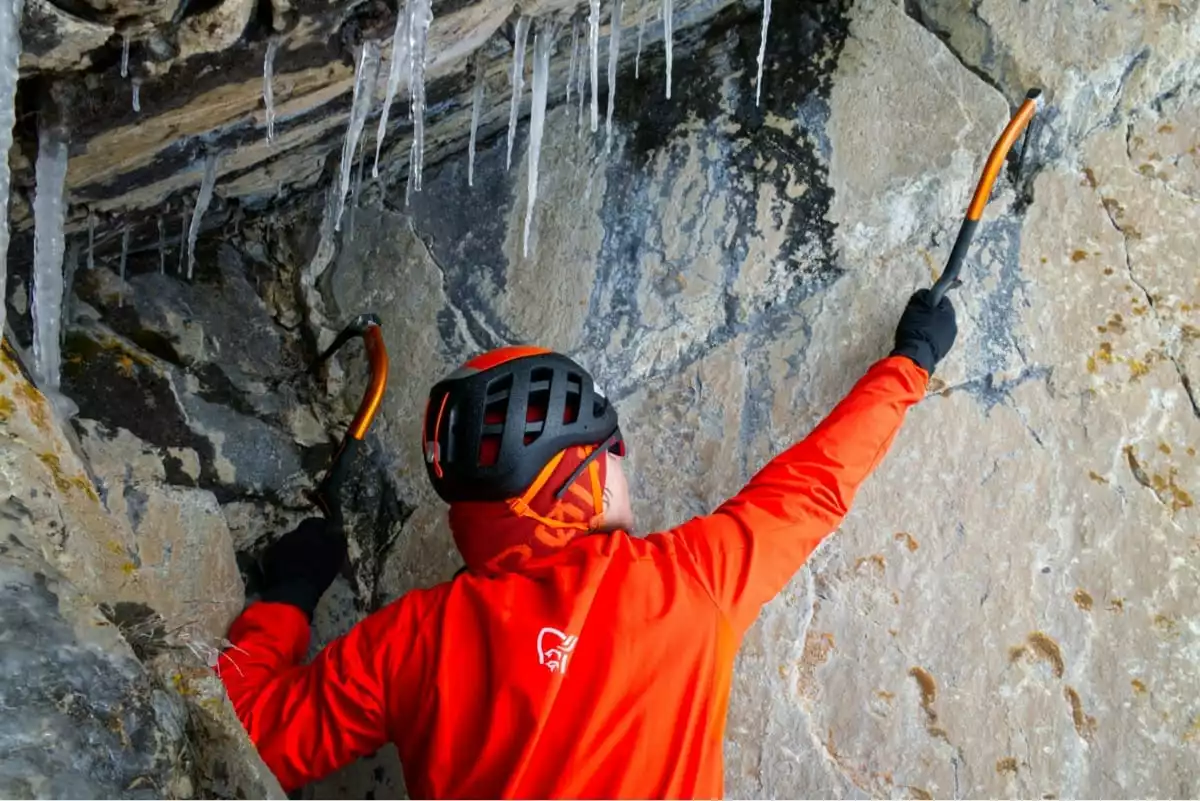 Stretchpaneler under armene sikrer god pusteevne og bevegelighet i bratte fjellvegger. Andre detaljer inkluderer to håndlommer, to brystlommer med glidelås, en beskyttende krage og elastiske mansjetter med tommelhull.