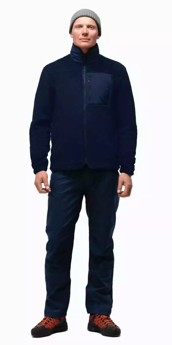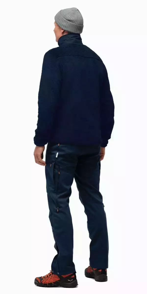 Fleecejakken har kantdetaljer på alle falder som gir den et rent utseende, og komfortabel, elastisk kant rundt mansjettene. Utsiden av kragen og den utvendige lommen har et vevd, resirkulert yttermateriale som gir ekstra vindmotstand, og mykt fleecefôr på innsiden.