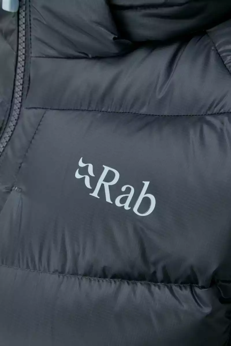 Varm dunjakke fra RAB som passer til de kalde dagene i fjellet med vannresistent Pertex Quantum Pro i ytterstoffet og behagelig Pertex Quantum på innsiden. Den har hjelmkompatibel hette med vaier i bremmen så den er lett å forme, samt at den er justerbar. Den har 2-veis glidelås i front og justering på mansjettene og nede. To håndvarmerlommer gjør at du kan varme hendene. Fluorkarbon-fri impregnering fra Nikwax spesielt utviklet for Rab.