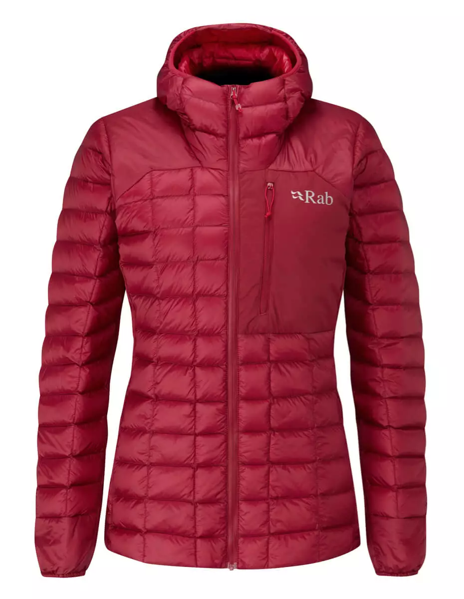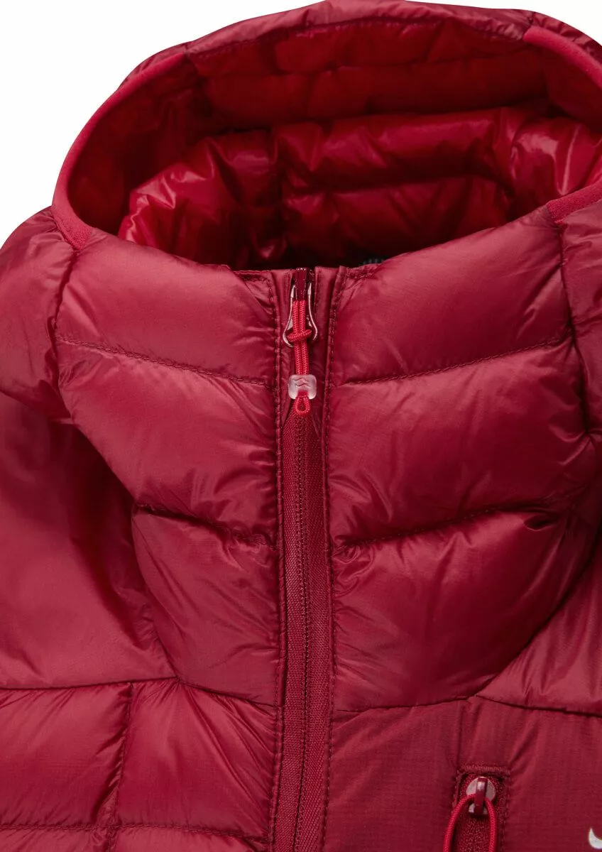 Rab Kaon Jacket er en superlett dunjakke til dame med strategisk plasserte stretchpanel og syntetfyll på skuldrene samt dunfylt hette, som gjør den til en allsidig dunjakke som kan brukes til de fleste aktiviteter og er perfekt for kjølige sommere, vår og høst. Den har YKK glidelås i front og brystlomme med glidelåsluking, og pakkes enkelt ned i medfølgende pakpose.