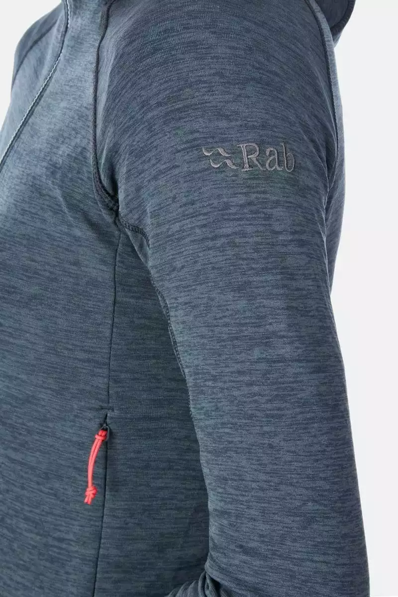 Rab Nexus jakken er laget med Thermic™-stretch-fleece for bevegelsesfrihet når du går eller klatrer. Med flate sømmer som tillater enkel lagdeling og bevegelse under et skall har den en normal passform. Stoffet er mykt og behagelig, mens YKK®-glidelåsen foran, to YKK®-glidelåslommer og tett passform under hjelmhetten hjelper deg å holde deg varm på kjøligere dager. Nexus-jakken er den perfekte partneren for en tur til fjells; slitesterk, tøyelig og komfortabel, det er din beste lettvektsteknisk fleece.