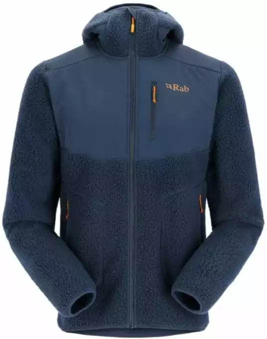 Rab Outpost Jacket er en teknisk fleecejakke med hette som har et retro utseende. Den er laget i Polartec® 300 Classic med dobbelvevd Matrix™ på skulder og brystparti. Den har to høytsittende sidelommer og en brystlomme med glidelås, samt YKK VISLON® glidelåslukking i front.