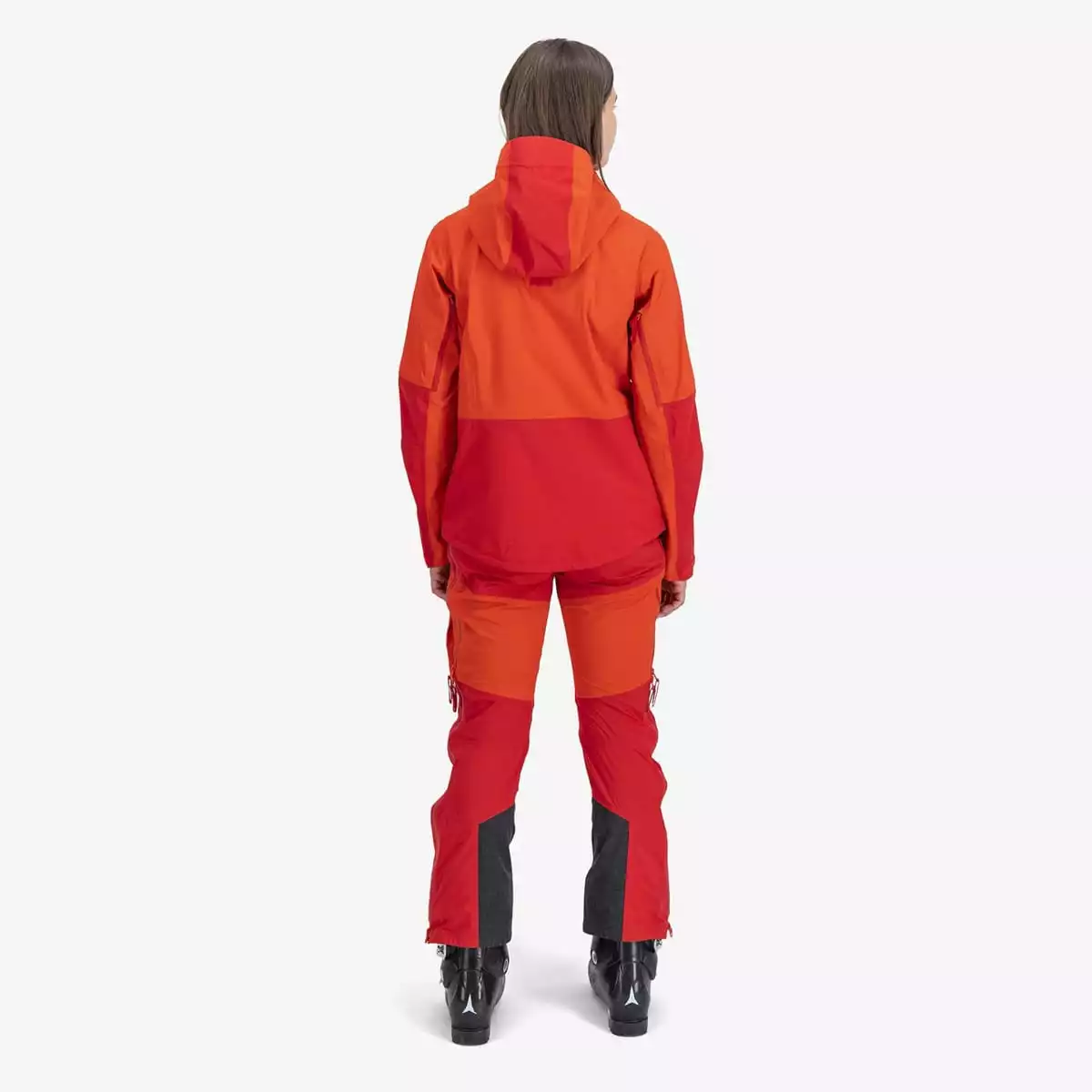 Denne jakken er fullt tapet og har en teknisk passform konstruert for full bevegelsesfrihet. Designlinjene er plassert med tanke på funksjon; enkel tilgang for brystlommene med glidelås og ventilasjon under ermene når du har på deg en ryggsekk. Stormhette montert for en alpinhjelm med enhåndsjustering, ermeåpning med borrelåsjustering og kroppsjustering nederst for stramming ved behov.