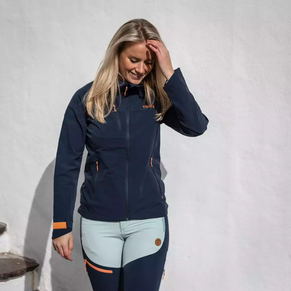 Tuftes nye Vipe jakke laget i softshell er et mykt og komfortabelt plagg spesielt laget for tur og andre aktiviteter utendørs. Det lette og ventilerende materialet er vind- og vannavstøtende og ekstremt komfortabelt å ha på, uansett om du klatrer helt til topps eller tar det litt rolig. Med en romslig hette utstyrt med strammesnorer holder du deg trygg når det regner og blåser. Jakken har tre YKK glidelåslommer; to foran og en på brystet. Strammesnorer inni bunnvidden for enkel justering samt borrelås ved håndleddet for å forhindre varmetap. Materialet rundt albuene er laget for å være så fleksible som mulig når du beveger deg. Plagget er laget med bluesign® sertifisert nylon og resirkulert polyester i Tuftes beste forsøk på å lage praktiske og bærekraftige utendørsplagg så vennlige mot naturen som mulig.