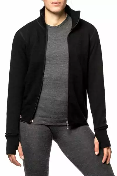Dette er et deilig mellomlagsplagg i Woolpower-materiale Ullfrotté Original 400 gram. Full Zip Jacket 400 har forsterket polokrage med lang glidelås og tommelhull i ermene. Dette mellomplagget er optimal å bruke under kalde forhold og når du ikke skal bevege deg så mye. I tillegg er den fin å bruke som en kofte eller jakke utenfor klærne du bruker til hverdags. Jakken har forlenget bakdel, for å forhindre at det blir gliper. En stilig detalj er Woolpower-logoen som er innstrikket bak på kragen. Teknikken i produksjonen gjør at tekstilet holder et nivå av densitet, som er nøkkelen til å beholde luft inne i tekstilet. Luft er nemlig det som isolerer kroppen mot kulden.